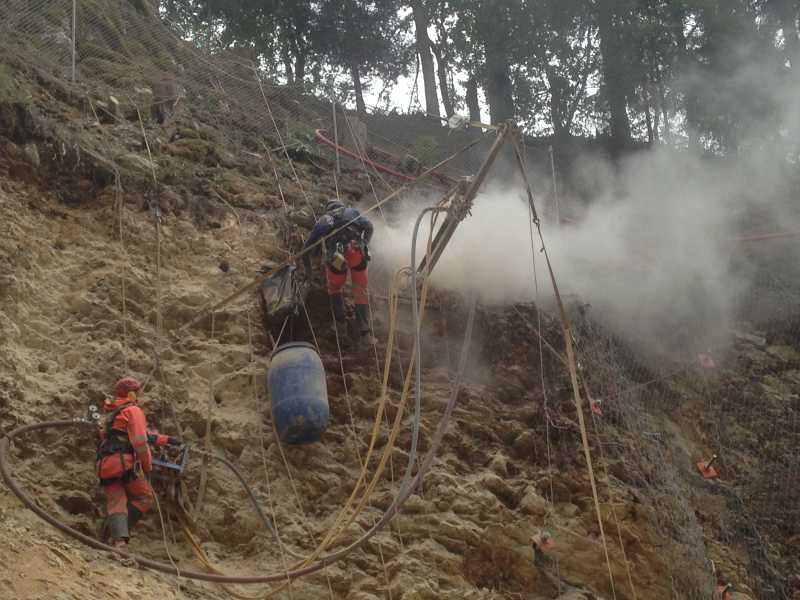 - Forage au marteau fond de trou de 90mm et mise en place des ancrages INOX de 40mm de diamètre et